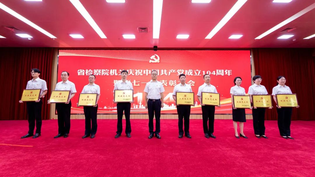 7月1日上午,在雄壯的國歌聲中,湖北省檢察院慶祝中國共產黨成立104周年暨“七一”表彰大會拉開帷幕。省檢察院黨組書記、檢察長王守安出席會議,帶領與會人員重溫入黨誓詞并為省院機關9個“紅旗黨支部”頒發獎牌、為4名老黨員代表頒發“光榮在黨50年”紀念章。省檢察院黨組成員、副檢察長雷愛民主持會議。