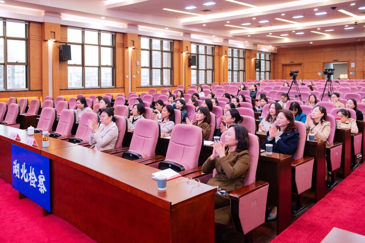 湖北省女檢察官協會會長、省檢察院黨組成員、副檢察長梁莉出席講座。講座采取電視電話會議形式進行,省院機關全體女干警及部分男干警在主會場聆聽,各市州分院全體女干警在分會場同步參加。